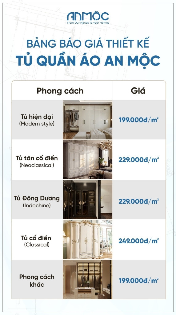 - Bảng báo giá thiết kế và thi công tủ quần áo mới nhất 2026